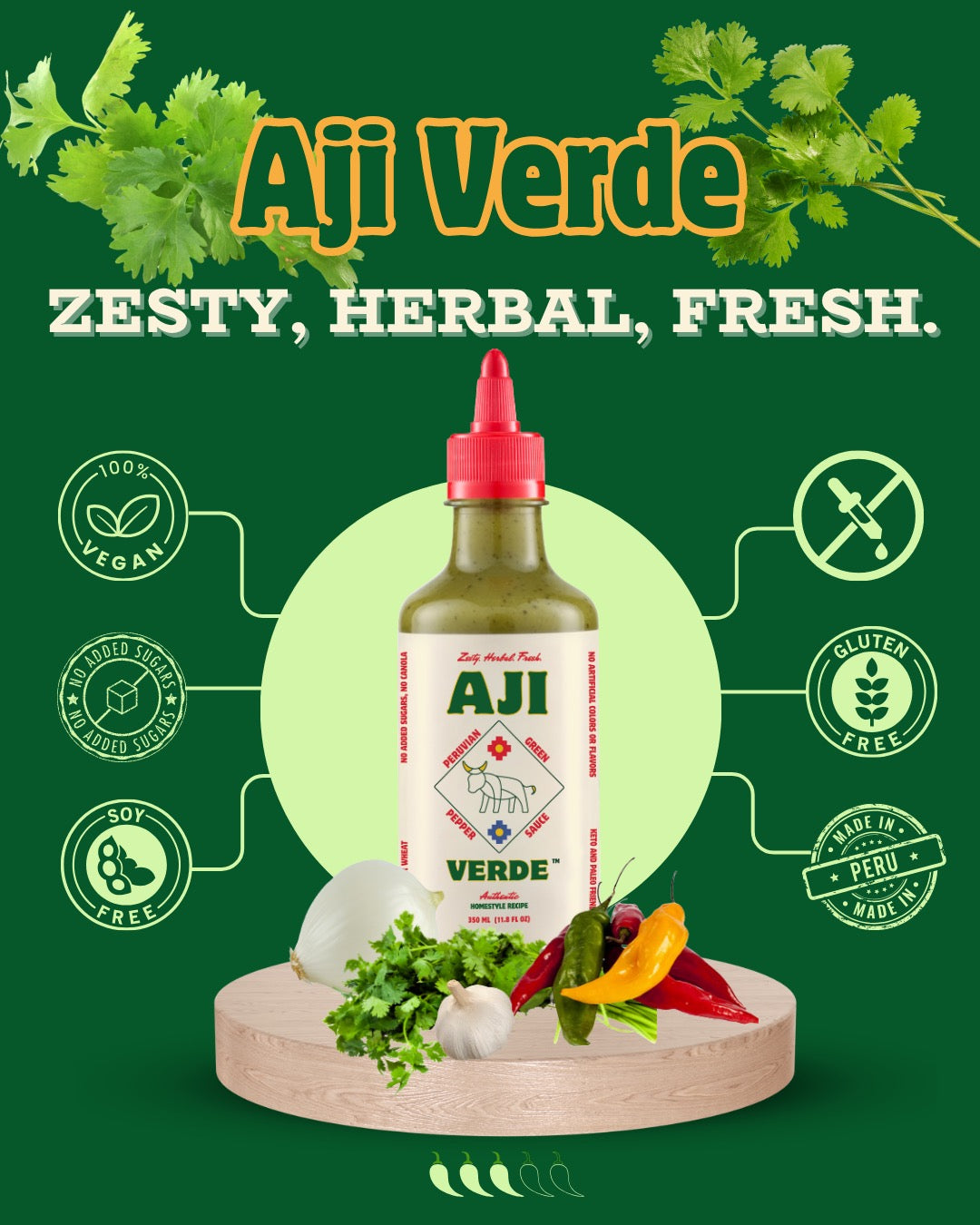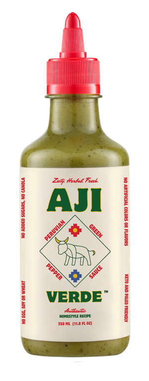 Aji Verde: Fresh, herby, and vibrant with Aji Limo peppers, cilantro, onion and garlic.
