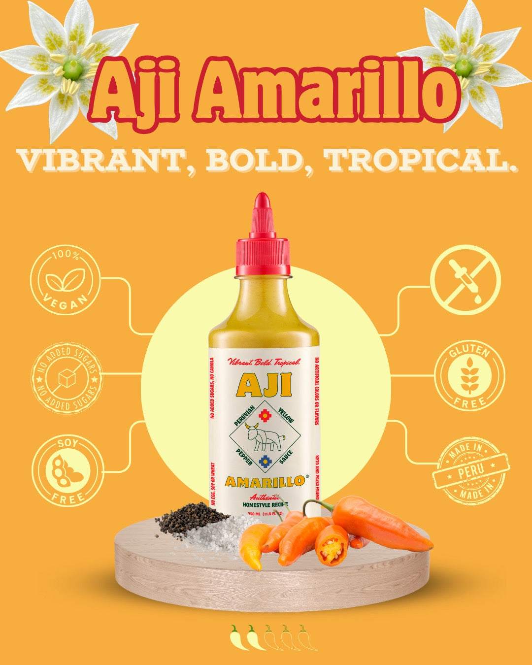 Aji Amarillo: Bright, golden, and fruity with a gentle heat — the heart of Peruvian cuisine.