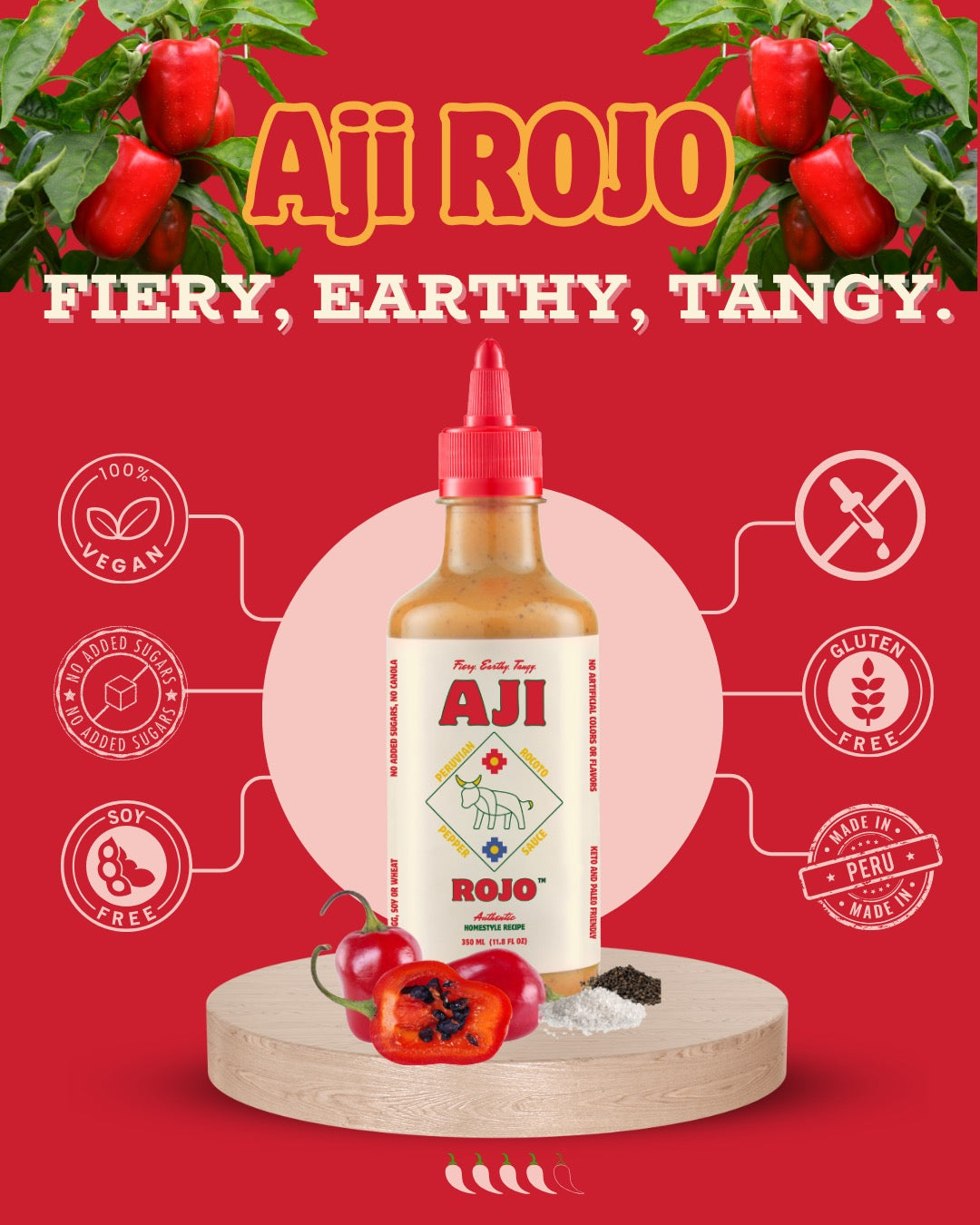 Aji Rojo: Bold and smoky with rocoto peppers and a tangy snap.