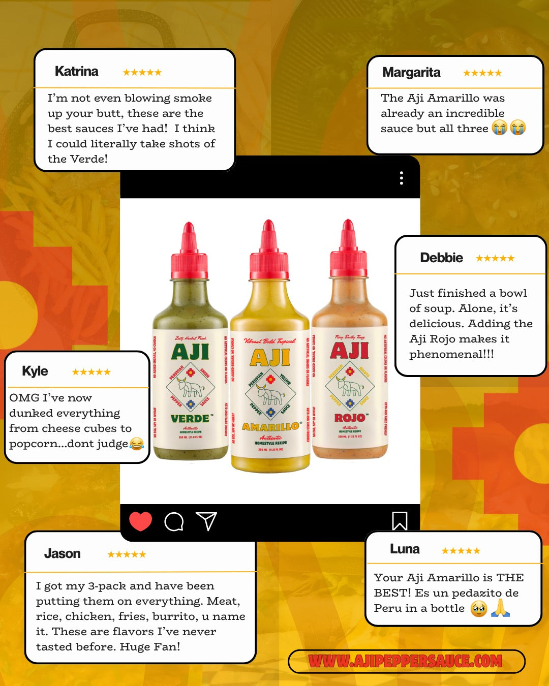 Bring home the full taste of Peru with our Aji Pepper Sauce 3-Pack — each sauce celebrates the bold flavors of authentic Peruvian peppers, crafted with clean ingredients and no fillers.